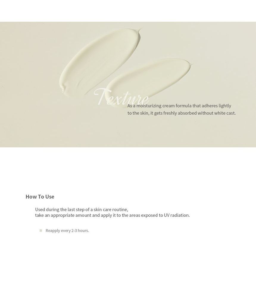 At the last step of skincare routine, evenly spread a proper amount over areas frequently exposed to the sun.