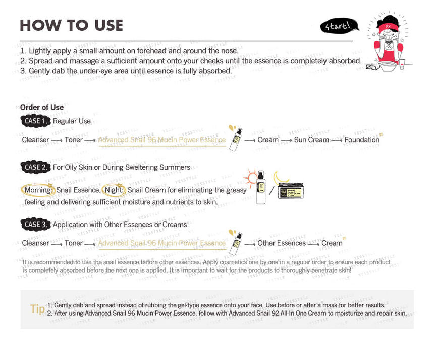 - This snail mucin essence adds intense moisture to the skin while repairing damaged skin and improving skin texture.